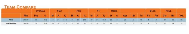 V dresu Partizana je zaigral tudi slovenski reprezentant Aleksej Nikolič (25 minut, 6 točk, 1 skok, 2 podaji), pri Beograjčanih je bil pri metu le Vanja Marinković (22 točk).