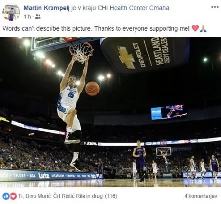 Deset mesecev in nekaj dni je trajalo. Martin Krampelj je vnovič šel skozi kalvarijo in pokazal, da ni nič nemogoče! Po slabem letu dni je minuli večer spet zaigral v dresu univerze Creighton – v 14 minutah je desetim točkam dodal pet skokov in tri podaje. Pa številke niso pomembne, ampak vnovična vrnitev hrusta iz Račne, in ne s Police pri Grosupljem, kot smo napak zapisali! Mimogrede: Krampelj in soigralci so bili s 101:57 boljši od ekipe Winona State.