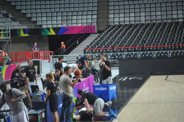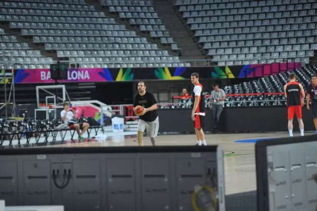 Slovenska košarkarska reprezentanca je sinoči opravila trening v dvorani Sant Jordi v Barceloni, kjer jo danes ob 20. uri čaka obračun osmine finala proti Dominikanski republiki. Razpoloženje je bilo dobro, po dobri uri in pol vadbe je igralce na treningu obiskal tudi predsednik Matej Erjavec, ki jim je izrazil podporo pred današnjo tekmo. Trening je spremljal tudi generalni sekretar Iztok Rems.