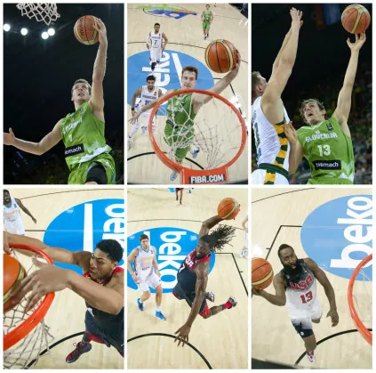 ZDA: Anthony Davis: 83 (13,8 na tekmo), Kenneth Faried: 77 (12,8 na tekmo), James Harden: 75 (12,5 na tekmo)