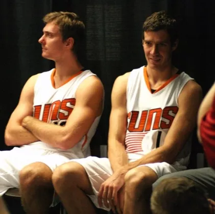 Pri NBA franšizah nadaljujejo z medijskimi predstavitvami. Dan, namenjen sedmi sili, so imeli tudi pri Phoenix Sunsih, zato smo za vas zbrali nekaj najzanimivejših trenutkov, ki jih zabeležile kamere ali fotoaparati. V ospredju sta - vsaj za slovenske ljubitelje košarke - Goran in Zoran Dragić. Slednji se je sploh prvič predstavil v dresu s številko 10.