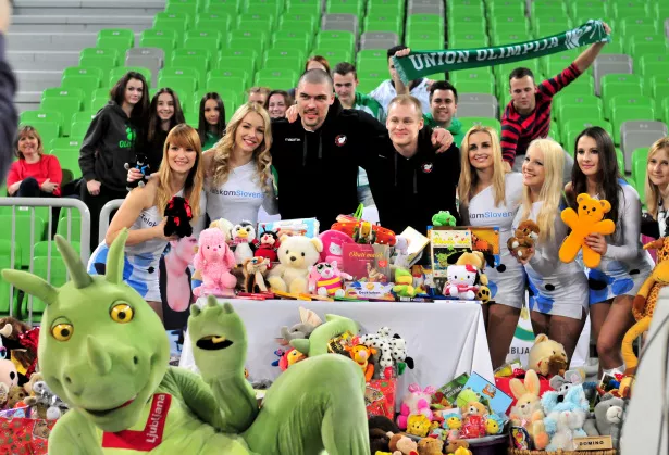 Ljubljančani so s pomočjo obiskovalcev tekem zbrali lepo število igrač in dobrot, ki bodo zagotovo prišle v prave roke v okviru projekta Narišimo nasmeh na obrazih otrok 2014.
