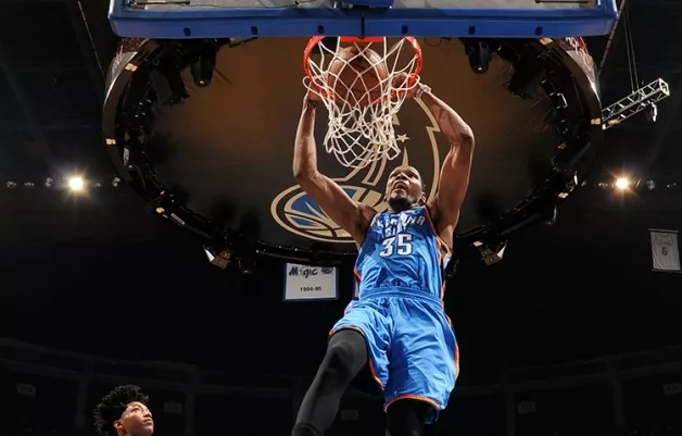 V noči na ponedeljek je Oklahoma City Thunder s 127:99 visoko slavila v Orlandu. Prvi zvezdnik Kevin Durant je v 28 minutah dosegel 21 točk,11 skokov in 8 podaj.