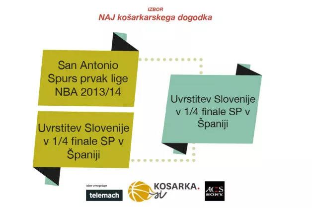 V 1. krogu 1/4 finala izbora za NAJ košarkarski dogodek leta 2014 ste izglasovali slovensko reprezentanco in njeno uvrstitev v 1/4 finala SP v Španiji.