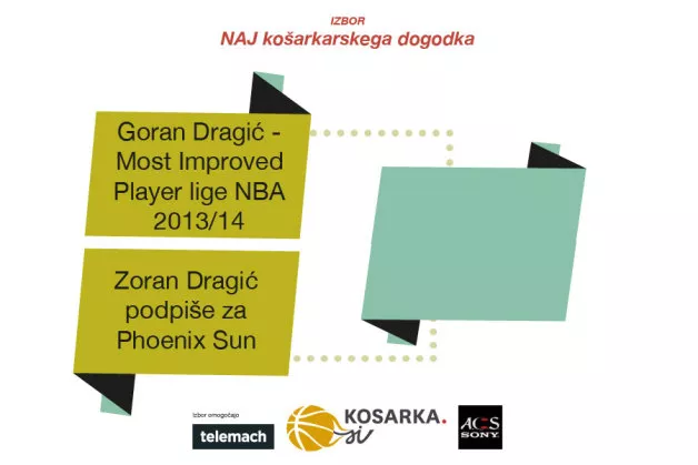 Preko Facebook aplikacije NAJ DOGODEK LETA na Facebook profilu Košarka, I like lahko vsak dan izberete zmagovalca posameznega kroga, s tem pa se potegujete tudi za praktične dnevne nagrade – 2x Telemach majica, 2x majica Košarka.si in 1x slušalke Sony. V finalu bomo med vsemi sodelujočimi izžrebali nagrajenca, ki bo prejel glavno nagrado – košarkarsko žogo s podpisom Gorana Dragića.Goran Dragić - Most Improved Player lige NBA 2013/14 VS. Zoran Dragić podpiše za Phoenix Suns