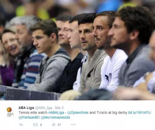 VIP gosta Derbi ABA lige med Crveno Zvezdo in Partizanom sta si ogledala tudi teniška mojstra Novak Đoković in Viktor Troicki.