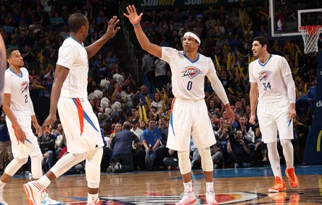 Organizatorju igre Oklahome Russllu Westbrooku je proti Torontu uspelo doseči še peti trojni dvojček na zadnjih šestih tekmah, kajti 30 točkam je dodal 11 skokov in 17 podaj. Derbi večera so v Oaklandu dobili Warriors, ki so bili s 106:98 boljši od La Clippers.