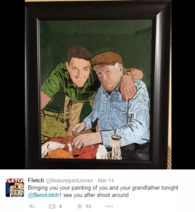 Beno Udrih je v preteklem tednu dobil izjemno sliko, na kateri je naslikan skupaj s svojim dedkom....