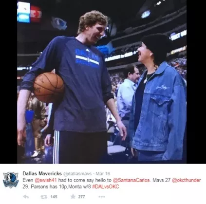 Album kitarskega virtuoza Carolsa Santane pa ima v svoji zbirki zagotovo prvi zvezdnik Dallasa Dirk Nowitzki, ki ni zamudil priložnosti za kratek pogovor, ko si je Santana ogledal tekmo proti Oklahomi.