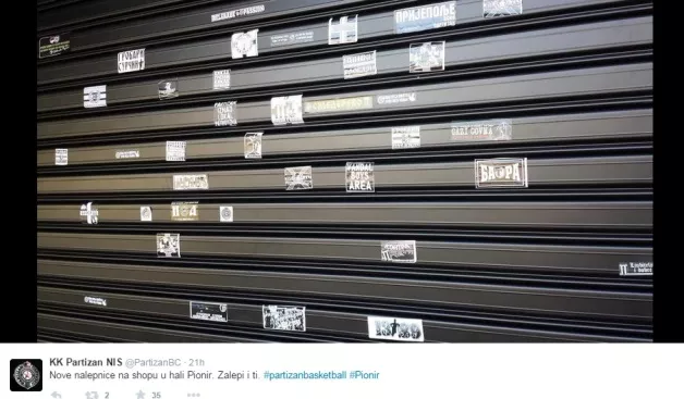 Pri mestnem tekmecu Partizanu, so navijače pozvali, da z nalepkami okrasijo klubsko trgovino v dvorani Pionir :)