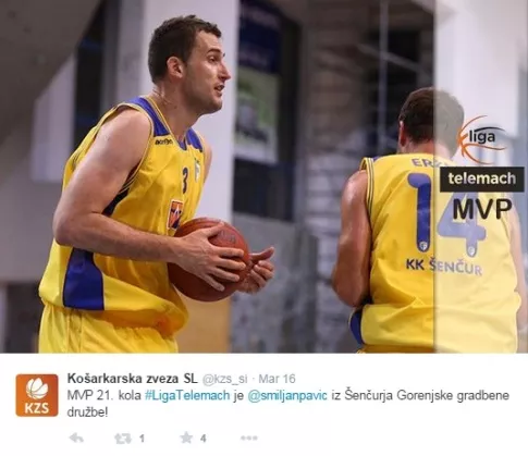 Smiljan je v preteklem tednu postal MVP Lige Telemach, kar je tudi z ponosom delila na svojem Twitter računu...