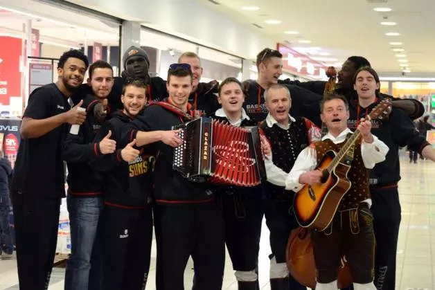 Ob odprtju prenovljenega nakupovalnega središča v Domžalah so zbrane goste zabavali košarkarji tamkajšnjih Helios Sunsov.