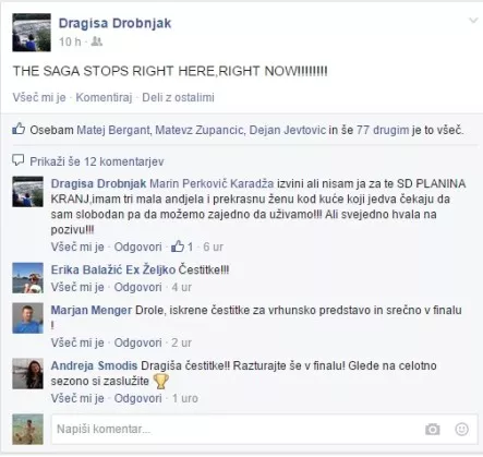 Najizkušenejši član Tajfuna Dragiša Drobnjak, tekom kariere dvakrat član dolenjskega moštva, je na facebooku zapisal, da je Krkine "sage" osvajanja naslovov konec tu in zdaj. Za dosežek je požel ogromno čestitk, mi pa smo za vas zbrali še nekaj najbolj zanimivih odzivov.