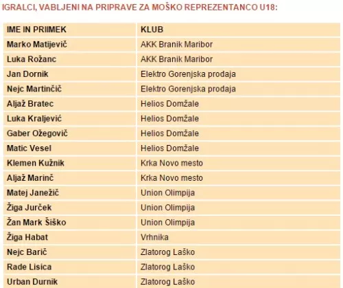 TEKME SLOVENIJE NA EVROPSKEM PRVENSTVU DIV. B ZA REPREZENTANCE U18 (Oberwart, Avstrija)