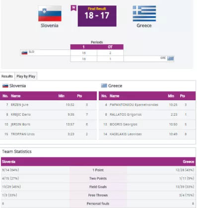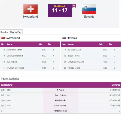 Medtem, ko so košarkarice brez večjih težav s 17:11 premagale Švicarke, so se košarkarji nekoliko bolj namučili z Grki, katere so premagali šele v podaljšku. Pri Slovencih, ki so bili iz igre 45% uspešni, je s 7 točkami blestel Dario Krejić.