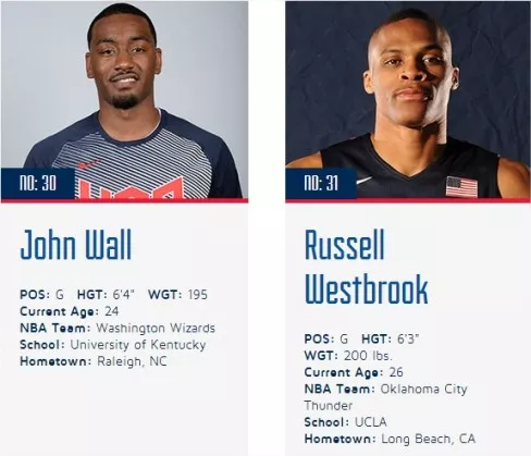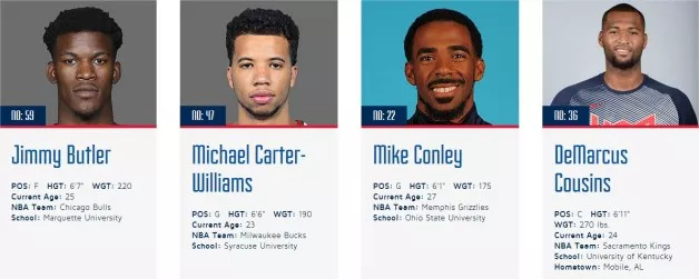 - enajst košarkarjev je članov ekipe, ki je leta 2014 osvojila zlato na svetovnem prvenstvu (Cousins, Curry, Davis, Drummond, Faried, Gay, Harden, Irving, Love, Plumlee in Thompson)