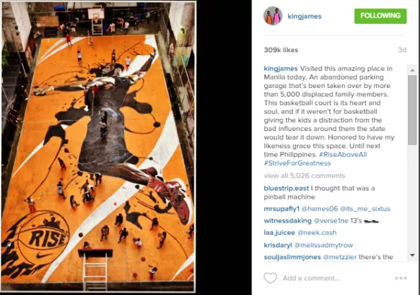 LeBron James se je pretekli vikend mudil na Filipinih, kjer je v Manili mentoriral mlade košarkarje, ki so sodelovali v Nikovem TV resničnostnem šovu »Rise«. Cilj programa je najti talentirane mlade Filipince, predvsem tiste iz podeželja, ter jim pomagati razviti košarkarski talent.