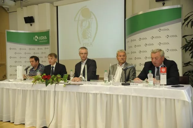Vodstvo KK Krka na današnji novinarski konferenci (foto: Drago Perko/kosarka.si)[/caption]