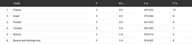 V osmino finala iz skupine A napredujejo Francija, Izrael, Poljska in Finska.