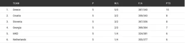 V osmino finala iz skupine C napredujejo Grčija, Hrvaška, Slovenija in Gruzija.