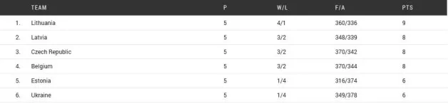 V osmino finala iz skupine D napredujejo Litva, Latvija, Češka in Belgija.