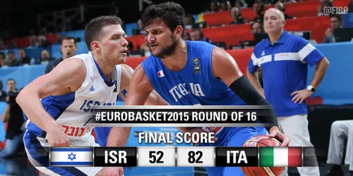V tekmi med Italijo in Izraelom ni bilo nobenih presenečenj. Azzuri so Izraelce odpihnili s 30 točkami razlike, 82-52. Nekoliko slabše je tekmo sicer odigral Gallinari, ki je dosegel le 6 točk, je pa zato blestel Gentille, ki je dosegel 27 točk in 5 skokov. Tekma se je odločila v tretji četrtini, ki so jo Italijani dobil z 28-9, nato pa so tekmo rutinirano pripeljali do konca. Pri Izraelcih je bil edini razpoložen Mekel s 20 točkami.