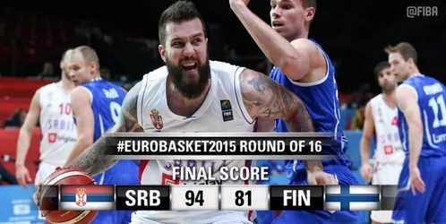 Na drugi tekmi je Finska pošteno namučila reprezentanco Srbije. S čvrsto obrambo, hitro igro v napadu in borbenostjo do zadnje sekunde, so Finci povzročali kar nekaj težav ekipi Saše Đorđevića. Po prvem polčasu so Srbi vodili tesno s 48-43, nato pa so v zadnji četrtini s serijo trojk le uspeli streti finski odpor in tekmo so dobili s 94-81. Miroslav Raduljica je dosegel 27 točk in to z odličnim metom 11/12. Večino od teh točk je Raduljica dosegel po pick and roll akcijah in tudi na račun tega so Srbi vpisali kar 30 asistenc. Poleg Raduljice sta blestela tudi Bjelica s 19 točkami in 14 skoki ter Teodosić s 8 točkami in 9 podajami. Pri Fincih je bil najuspešnejši nekdanji košarkar Olimpije Sasu Salin, ki je dosegel 26 točk.