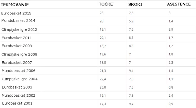 Zadeva praktično iz vseh položajev, tako pod košem kot tudi iz razdalje (spomnimo se 6/7 meta za tri proti Poljakom), blesti pa tudi v obrambi, kjer s svojimi skoki pobira še kako pomembne žoge. Do sedaj ima za seboj najuspešnejši turnir kariere, kar se tiče števila asistenc (3 na tekmo) ter drugi najuspešnejši turnir kar se tiče doseženih točk (23 na tekmo). Tudi pri skokih pa ne zaostaja, saj jih na tekmo zbere 7.8.