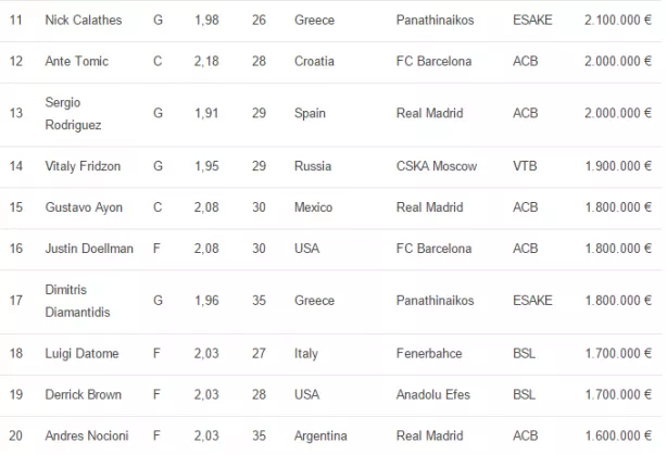 Tako, sedaj ko smo to razjasnili, vam predstavljamo največje zaslužkarje med košarkarji v Evroligi...