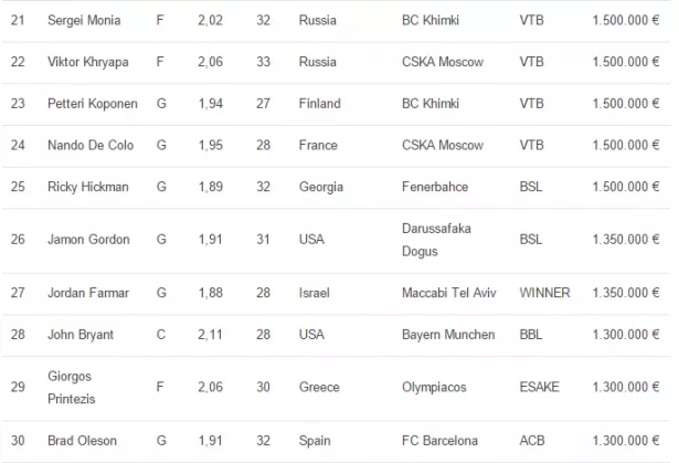 Trije tedni nas ločijo do pričetka 16. sezone moderne Evrolige, ki bo šesta zaporedna pod pokroviteljstvom letalske družbe Turkish Airlines. Napetost se stopnjuje iz dneva v dan, za to pa dodatno skrbijo tudi ekipe z razkrivanjem svojih igralskih kadrov in višinami plač. Več mesecev sta tako športna novinarja Feres Yahyabeyoglu in Mark Porcaro, tako kot mi, spremljala prestope košarkarjev in zbirala informacije o višini pogodb, ki so jih ti podpisovali z novimi delodajalci. Tako jima je uspelo priti do najboljšega približka, ki seveda ni uraden, vendar je najbližje realnemu stanju zaslužkov košarkarjev v Evroligi. Natančnejši vpogled v dejanske zaslužke boste dobili le, če boste v rokah držali dejanske pogodbe košarkašev.