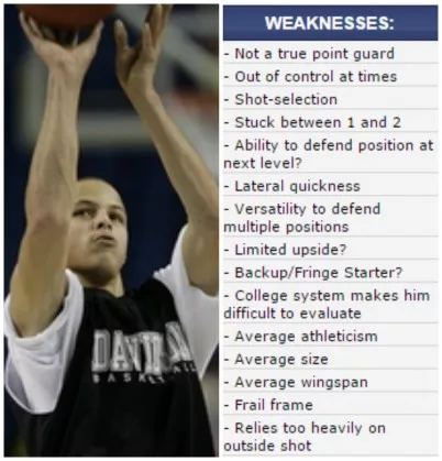Aktualni MVP lige NBA Stepehen Curry je v novem videu opozoril na dejstvo, da je bil po končani srednji šoli spregledan in podcenjen s strani DraftExpressa, ki ponuja profesionalne skavtske košarkarske analize, statistike in ocene bodočih NBA košarkarjev. Ta je leta 2009 v poročilu dvomil v Curryeve sposobnosti in možnosti, da bi lahko nekoč postal vrhunski organizator igre in eden najboljših košarkarjev v ligi NBA.