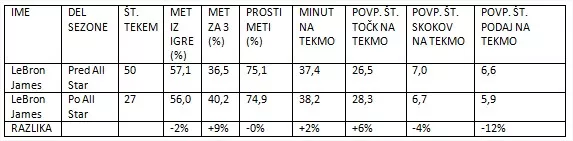 Za potrebe raziskave se je sezona razdelila na tisti del pred premorom za All Star tekmo in del po All Star tekmi. Kot primer si poglejmo LeBrona Jamesa v sezoni 2013/2014:
