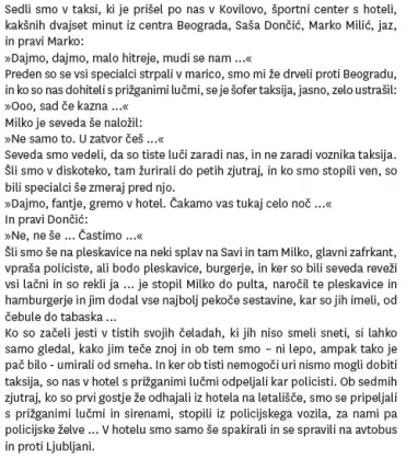 Danes vam predstavljamo izseka iz šestega poglavja z naslovom "Iz Ljubljane v Murico...in nazaj!". V poglavju lahko preberemo intervju s trenerjem pri Olimpiji v prvem delu sezone 2007-2008 Memijem Bečirovičem, trenerjem Olimpije v drugem delu sezone 2007-2008 Aleksandrom Đikićem in z nekdanjim kapetanom Olimpije in prvim Slovencem v ligi NBA Markom Miličem, ki je zaupal kar nekaj zabavnih dogodivščin, med drugim tudi tole: