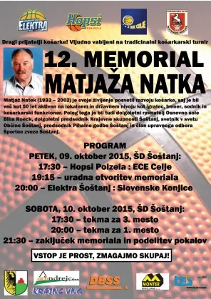 Danes in jutri bo Šoštanj v znamenju že 12. Natkovega memoriala. Na turnirju, ki ga organizirajo v spomin na Matjaža Natka (1933 – 2002) bodo sodelovali Elektra, Hopsi, ECE Celje in Slovenske Konjice.