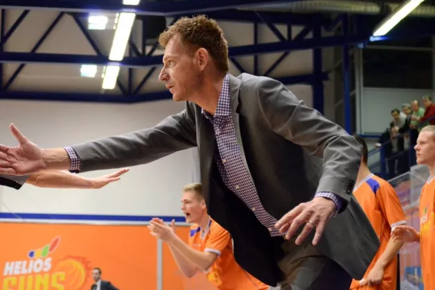 Gašper Okonr razumljivo ni zadovoljen z igro svojih fantov (foto: KK Helios)[/caption]