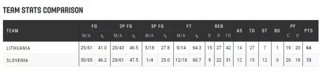 Litva – SLOVENIJA 64:73 (9:11, 23:16, 14:19, 18:27)