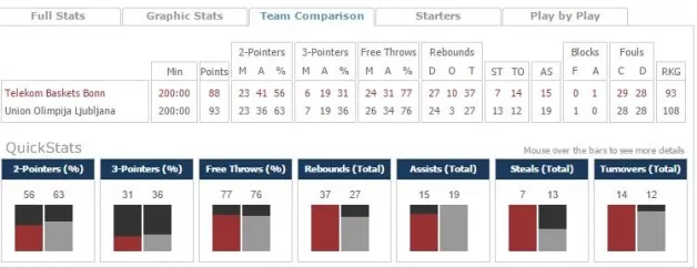 Bonn Telelom – UNION OLIMPIJA 88:93 (22:31, 18:15, 20:23, 28:24)