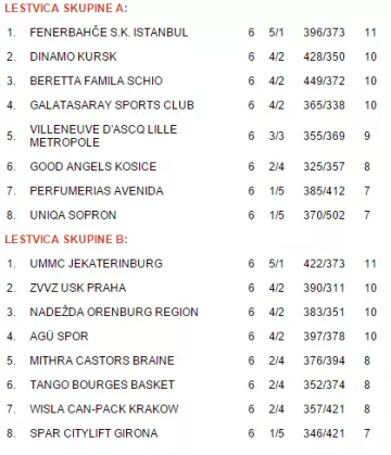 AGÜ SPOR : UMMC JEKATERINBURG 68:54 (15:25, 15:11, 20:10, 18:8) Sanders 19 (9 skokov, 4 podaje), McCarville 14 (6 skokov, 4 podaje); Griner 21 (7 skokov), Lyttle (12 skokov) in Beljakova po 12.