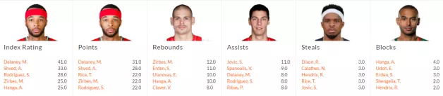 Ostali individualni vrhunci Delany je bil z 31 točkami najboljši strelec kroga, hkrati pa se je povzpel na drugo mesto najboljših strelcev letošnje sezone (med še aktivnimi v TOP 16), saj na tekmo v povprečju dosega 17.5 točk, boljši pa je le CSKA-jev Nando De Colo s 18.3 točkami v povprečju.
