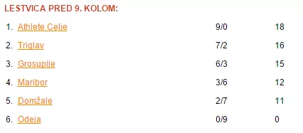 TRIGLAV : DOMŽALE 58:44 (8:10, 12:3, 22:19, 16:12) Jevtović 12, Jesenšek 9; Stefanoski 13 (13 skokov), Brekalo 9 (9 skokov).