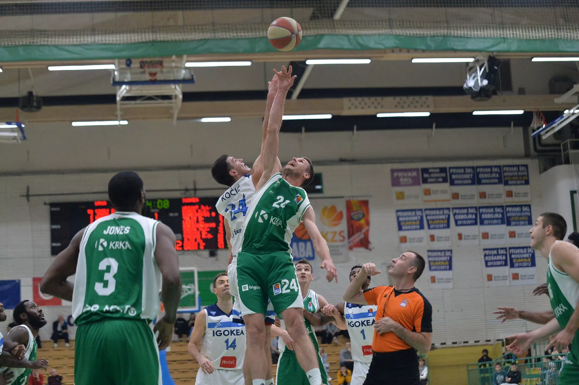 Krkaši so začeli v petorki Glenn Cosey, Lapornik, Marko Jošilo, Ivan Ramljak in Žiga Fifolt in po trojki Lapornika sredi pete minute vodili s 14:12. Do konca prve četrtine so dosegli le še točko, gostje pa 13 in po prvi četrtini je bilo +10 za Igokeo (25:15). Krkaši so v drugi četrtini začeli lov za gosti in se v 17. minuti približali na tri točke zaostanka (31:34), a so jim gostje do konca polčasa ponovno ušli na sedem točk prednosti (39:46).
