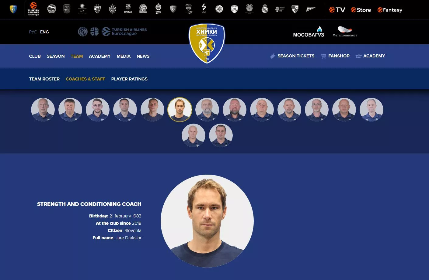 V novi sezoni bo v Evroligi z velikimi apetiti igral tudi moskovski Himki. Tam pa bo še naprej deloval tudi naš kondicijski trener Jure Drakslar. 37-letni strokovnjak, ki je minulo pomlad poskrbel tudi za fizično pripravo Luke Dončića, je podaljšal sodelovanje z Moskovčani, kar je lepo priznanje za slovenskega strokovnjaka. To bo že tretja sezona za Drakslarja v Moskvi.