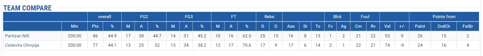 PARTIZAN NIS – CEDEVITA OLIMPIJA 86:77 (16:19, 22:21, 26:24, 22:13)