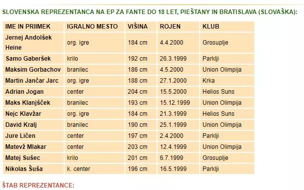 Slovenska reprezentanca fantov do 18 let bo v skupini C prvo srečanje odigrala v soboto, 29. julija, ob 20.15 proti reprezentanci Grčije. Grki so na lanskem prvenstvu zasedli deveto mesto, leto prej pa so se košarkarji Grčije veselili naslova evropskih prvakov. Že v nedeljo ob 20.15 čaka Slovence druga tekma skupinskega dela proti Litvi. Litovci so aktualni evropski podprvaki, leta 2015 pa so osvojili bronasto odličje. Po dnevu premora se bo slovenska izbrana vrsta v torek, 1. avgusta, ob 15.45 pomerila še s Finsko, ki je lanskem prvenstvu stare celine osvojila osmo mesto.