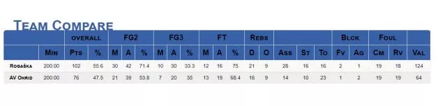 Košarkarji Rogaške so v 16. krogu prišli do 9. zmage, s 102:76 so odpravili Ohrid, ki je zabeležil 15. poraz. V domači vrsti se je z 19 točkami izkazal Marko Pajić. Domači trener Damjan Novaković je tretjič v tekmovanju minutažo namenil 18-letnemu Petru Vujačiču, ki je dobro izkoristil 19 minut in 24 sekund (12 točk, 1 podaja, 2 ukr. žogi).