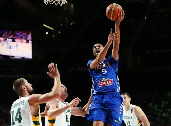 (Valančiunas 25 in 9 skokov, Juskevičius 14, Seibutis 13; Batum 27, Diaw 15, Heurtel 13)