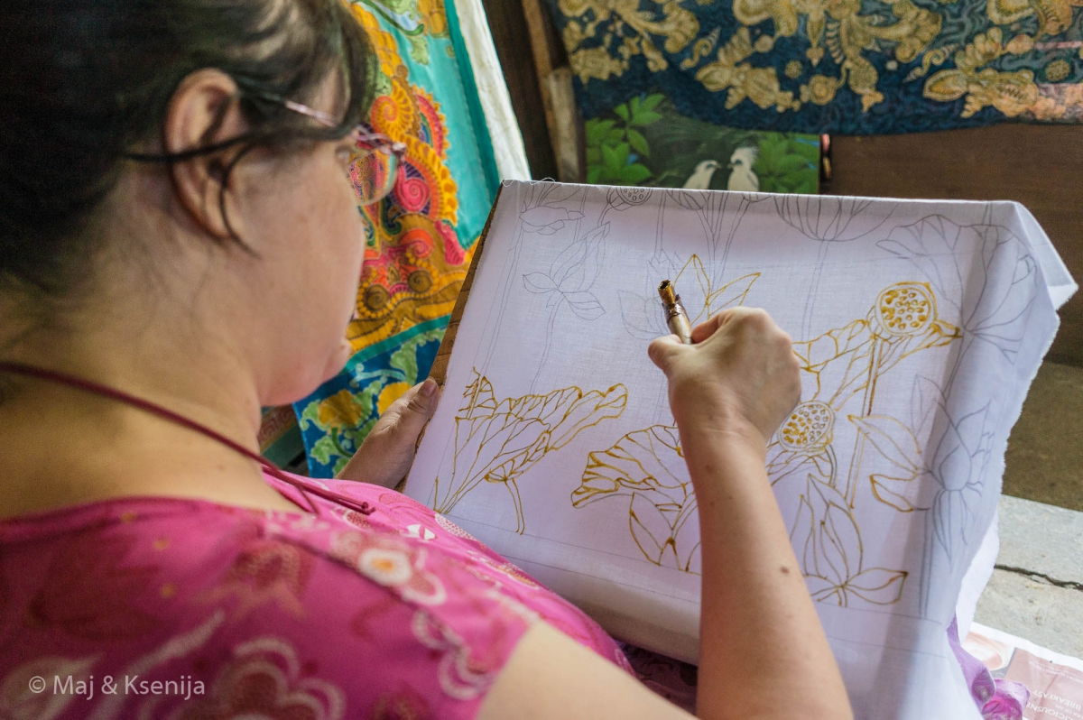 Dan, preživet v učenju batika. Drugi korak: izris motiva z voskom na blago. Čista meditacija.