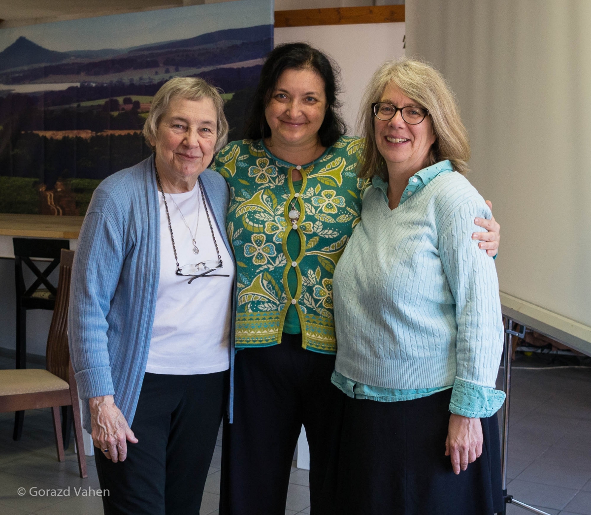 Med usposabljanjem o razumevanju in zdravljenju posledic travme in spolne zlorabe pri ženskah v rodni dobi s Penny Simkin in Georg'ann Cattelona. Kakšna čast, kakšen navdih je bil srečati takšni neverjetni, osupljivi in neponovljivi ženski iz oči v oči! Fotografija: Gorazd Vahen