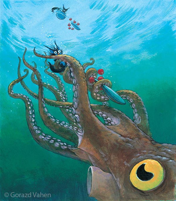 Srečanje med hobotnico in Kosovirjema Ilustriral: Gorazd Vahen (Pisateljica: Svetlana Makarovič)
