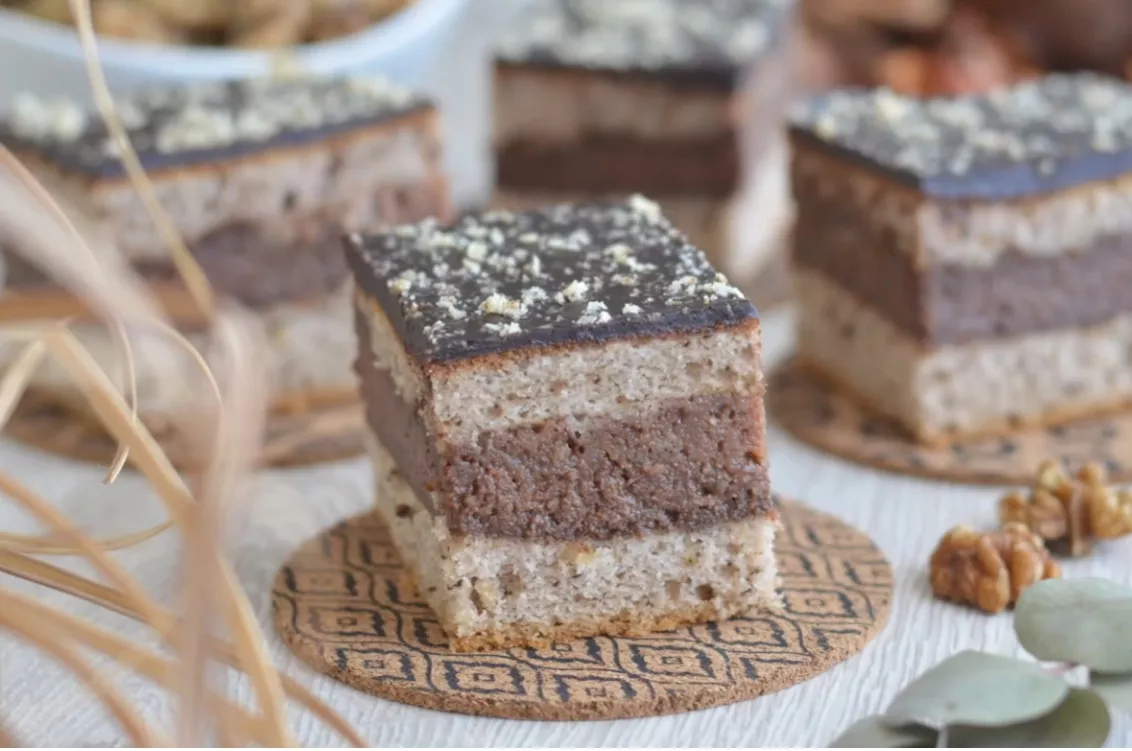 Orehovo pecivo s čokolado in ganachejem je odlična praznična alternativa potici.
